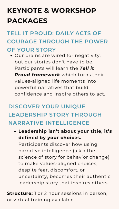 Each keynote or workshop is informed by The New Quo Change model, which uses the four key methodologies below to deliver transformational learning experiences that inspire the audience, help them create meaningful connection with others, and take actionable steps towards status-quo breaking goals: